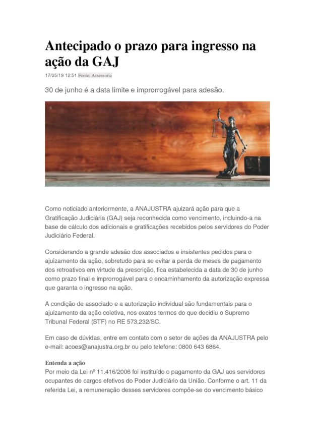ATENÇÃO ASSOCIADOS DA ANAJUSTRA. O PRAZO PARA ENTREGA DA DECLARAÇÃO SOBRE A GAJ, FOI ALTERADO. FIQUE ANTENADO. 27 de maio de 2019Sem categoriaBy Edison Emanuel