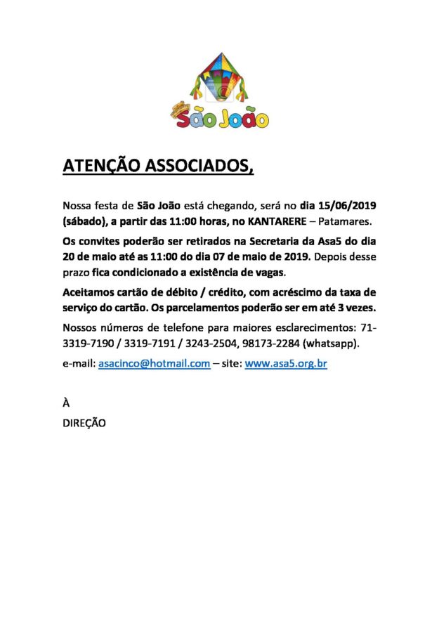 CARO AMIGO E ASSOCIADO, PÁSCOA É TEMPO DE CELEBRAR A VIDA E RENOVAR O ESPÍRITO. A ASA5 DESEJA A VOCÊS E SEUS FAMILIARES, FELIZ PÁSCOA. À DIREÇÃO. 16 de abril de 2019Sem categoriaBy Edison Emanuel